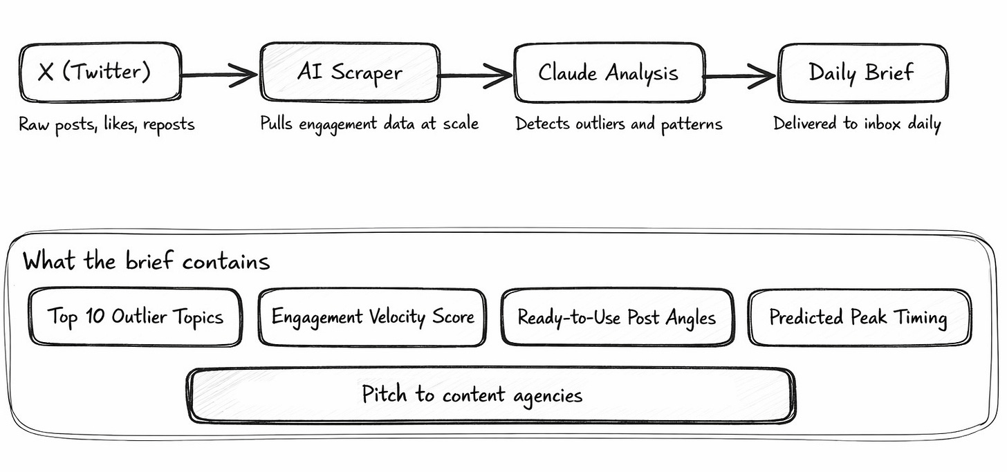 💡Consider this practical application: constructing an 𝕏 scraper that flags outlier viral topics and post concepts before they become widespread. That single workflow has the potential to be pitched to numerous content and media companies.