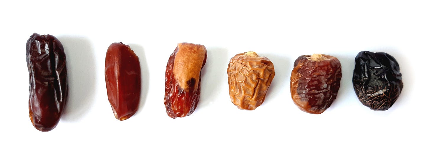 It has a distinct dual color with a beige color crown on top of the date. It contains a lot of calcium and potassium.